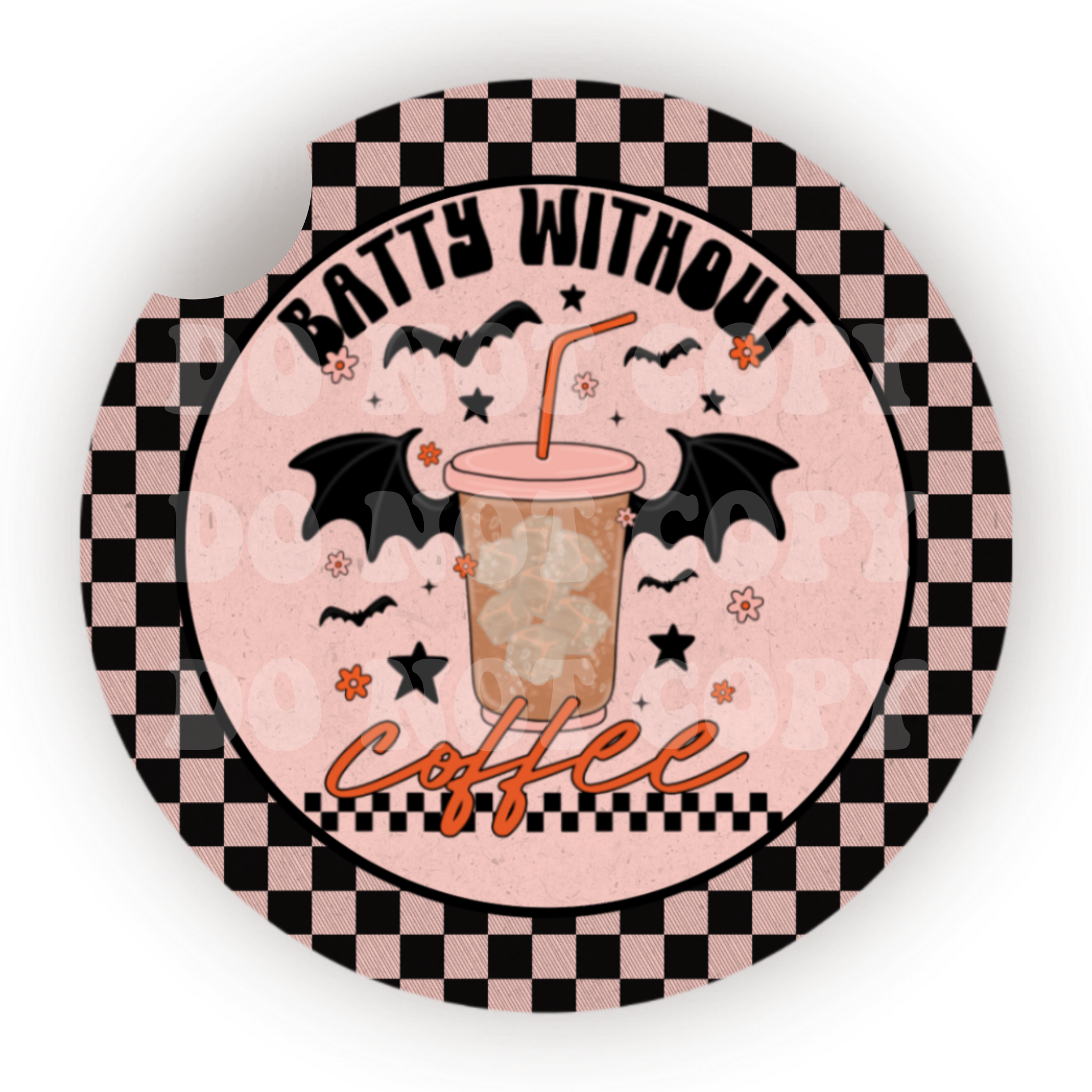 Batty Without Coffee Car Coaster Sublimation Transfer (Set of 2)
