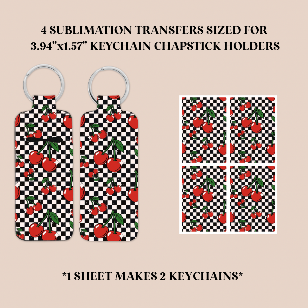 Black & White Checker Cherries Keychain Chapstick Holder Sublimation Transfer