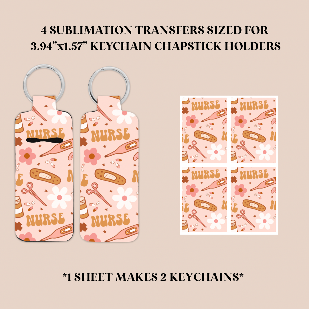 Boho Nurse Keychain Chapstick Holder Sublimation Transfer