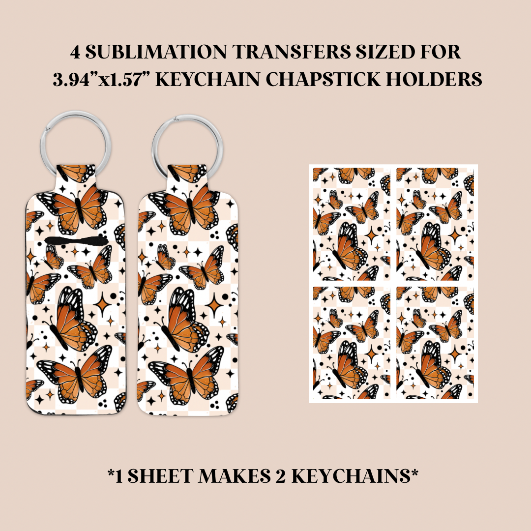 Checker Butterflies Keychain Chapstick Holder Sublimation Transfer