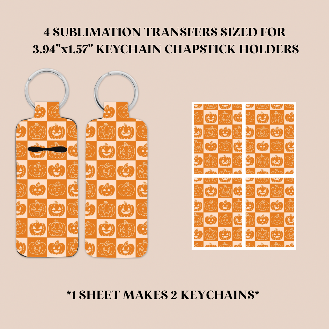 Checker Jack-o’-Lanterns Keychain Chapstick Holder Sublimation Transfer