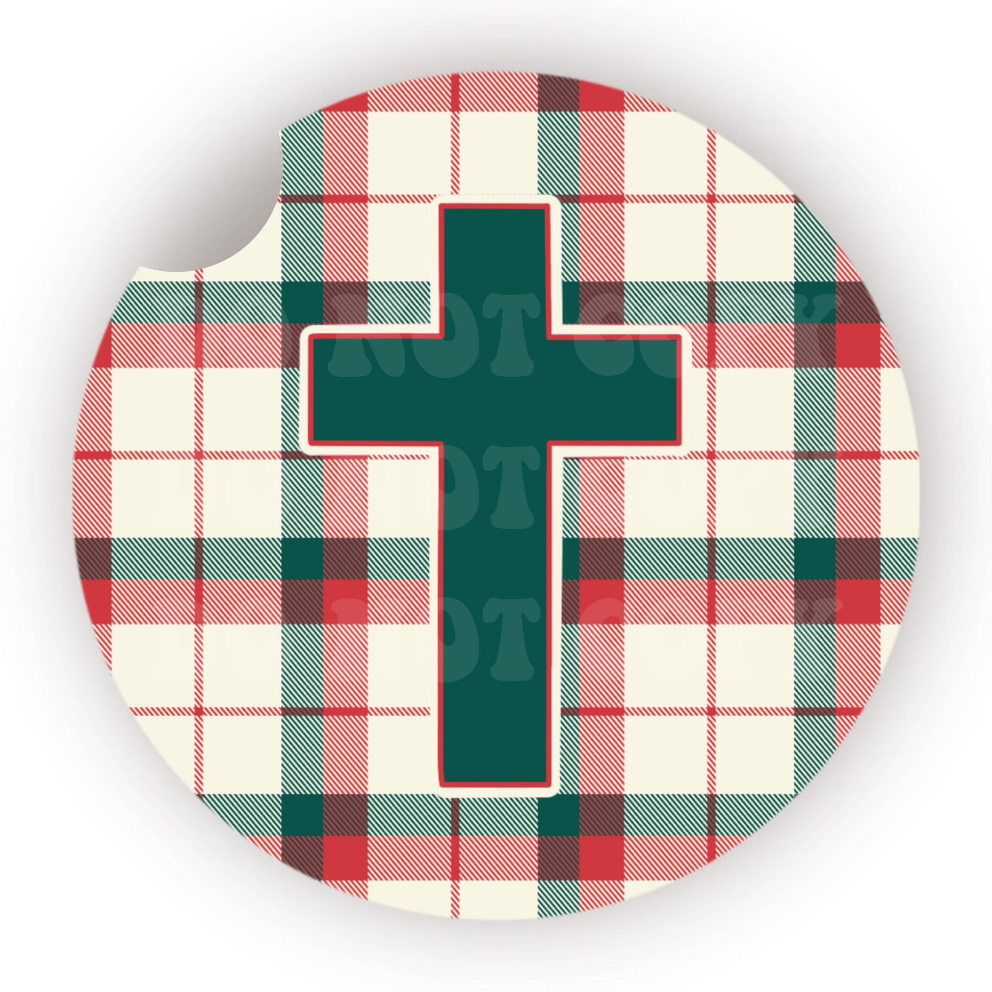 Christmas Plaid Cross Car Coaster Sublimation Transfer (Set of 2)