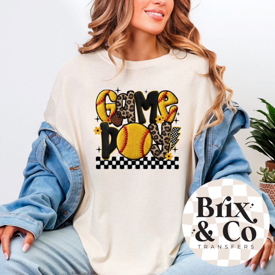 Faux Yarn Game Day Softball DTF HOT PEEL