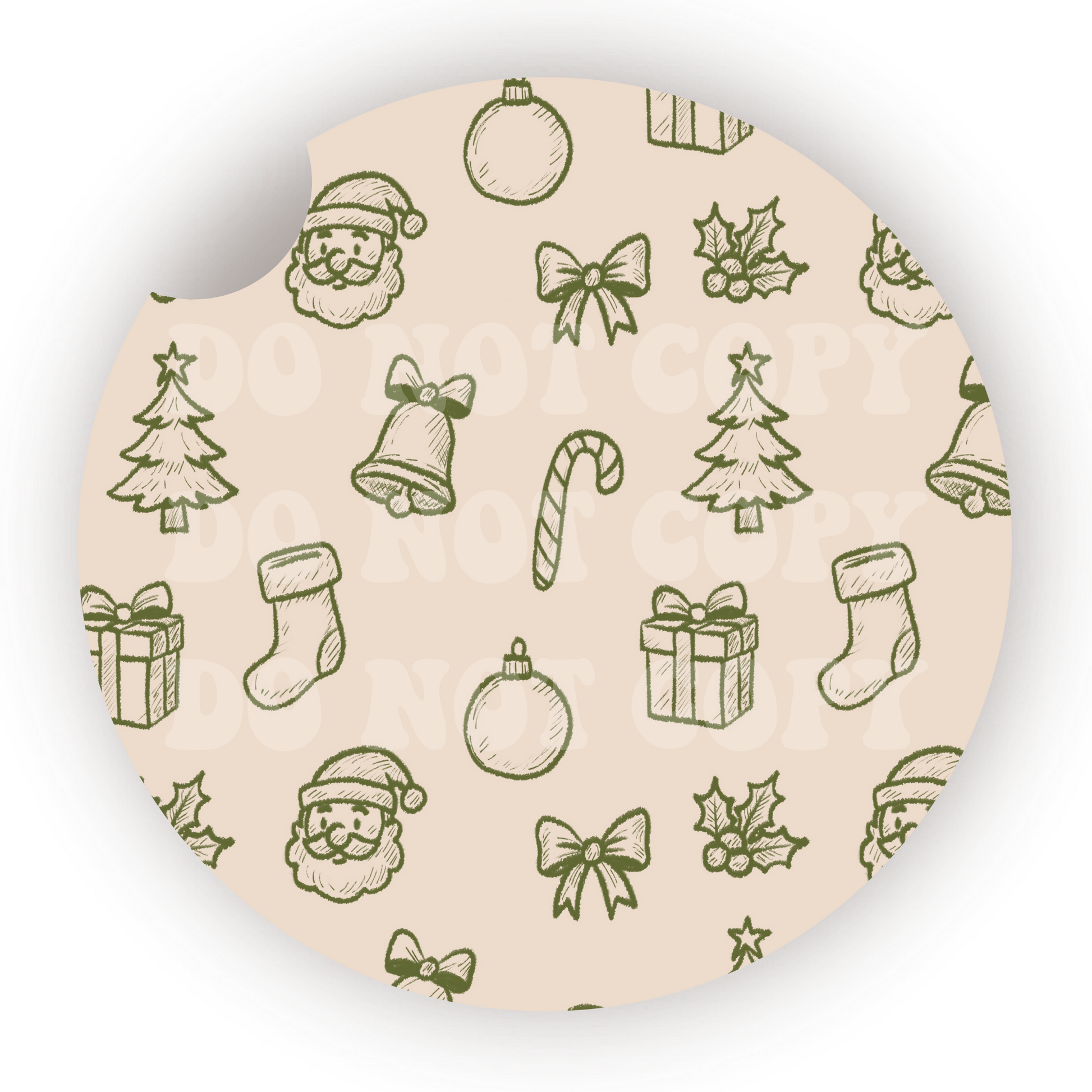 Green Christmas Doodles Car Coaster Sublimation Transfer (Set of 2)