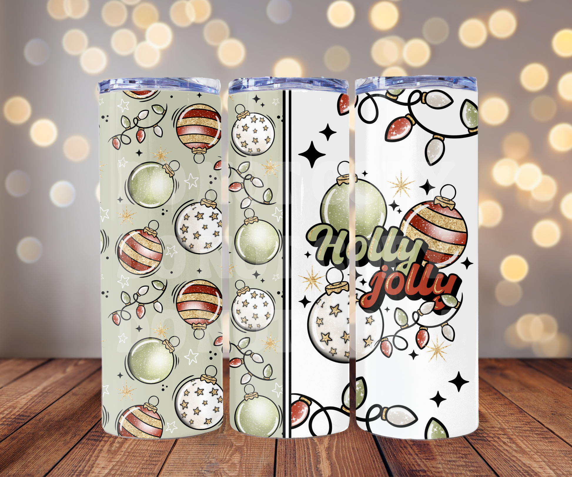 Holly Jolly 20 oz Skinny Tumbler Sublimation Transfer - Not Seamless