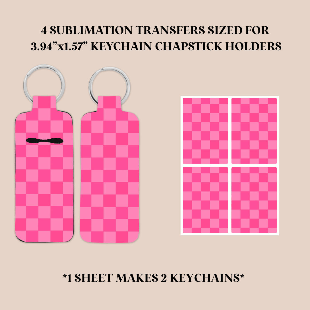 Hot Pink Checker Keychain Chapstick Holder Sublimation Transfer