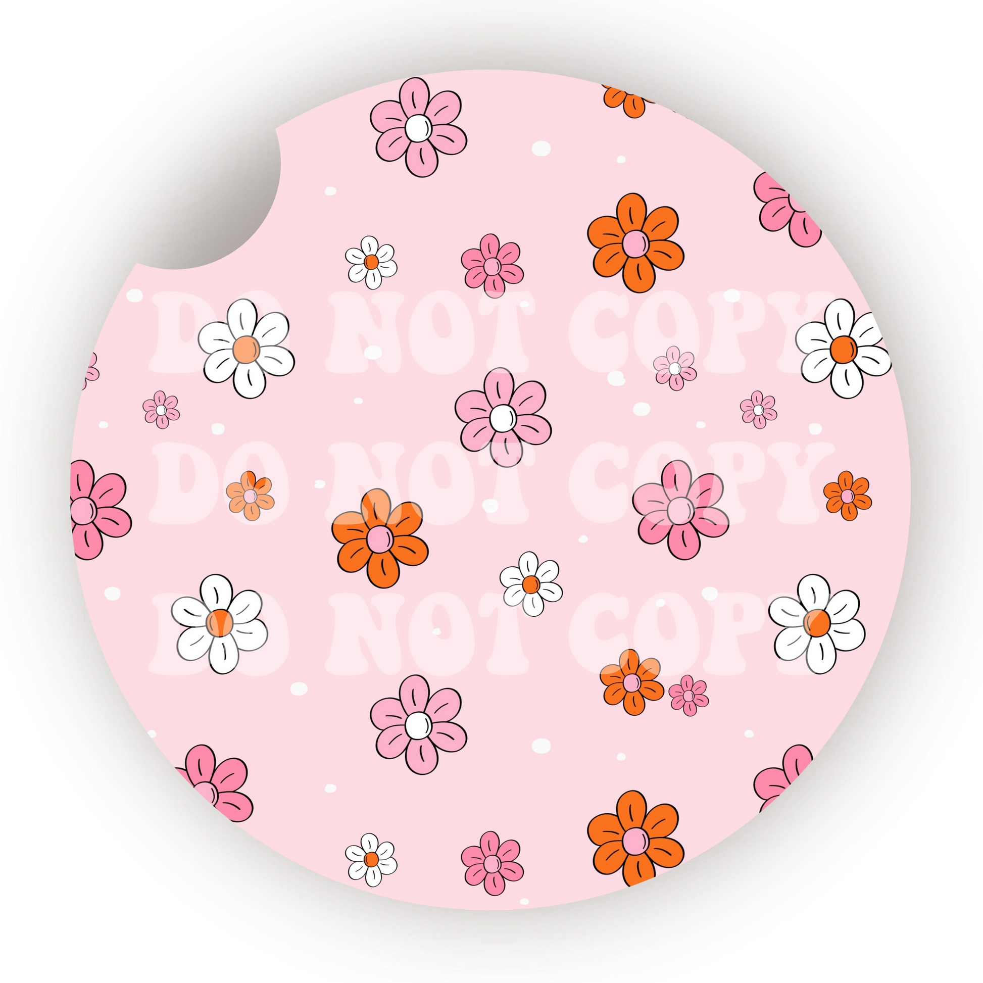 Pink, Orange, & White Flowers Car Coaster Sublimation Transfer (Set of 2)