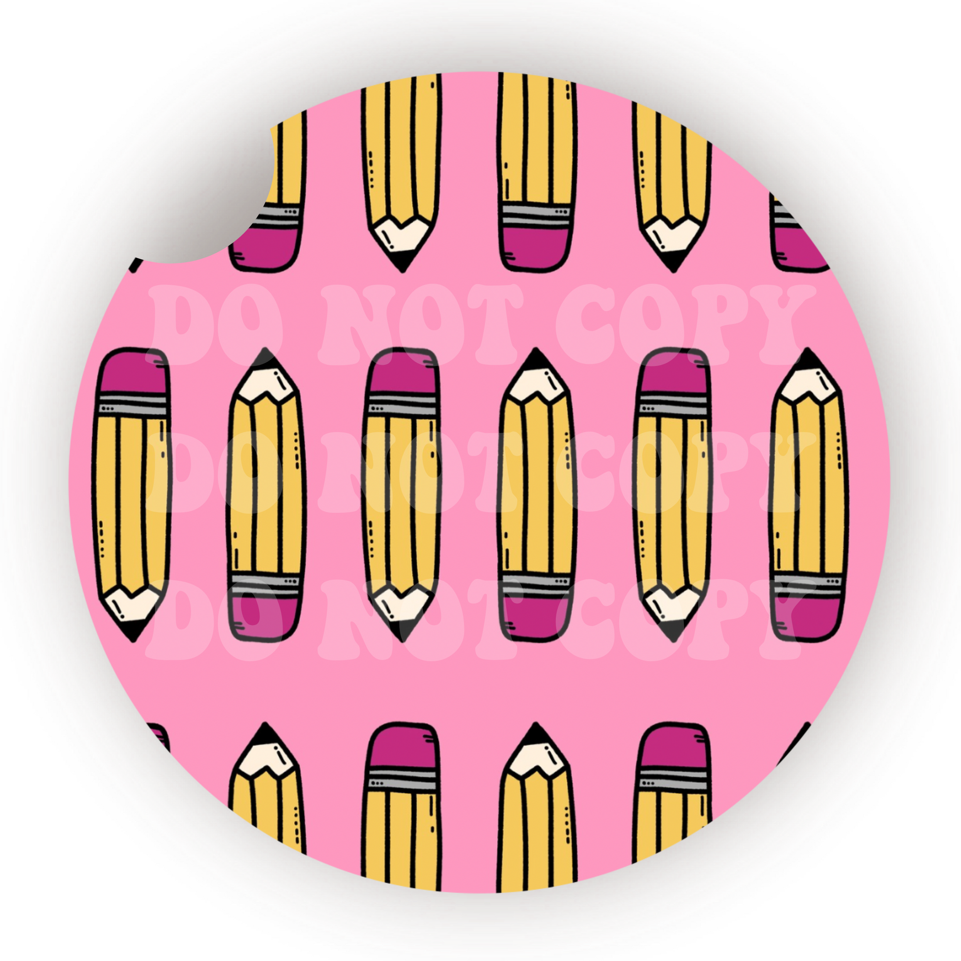 Pink Pencils Car Coaster Sublimation Transfer (Set of 2)