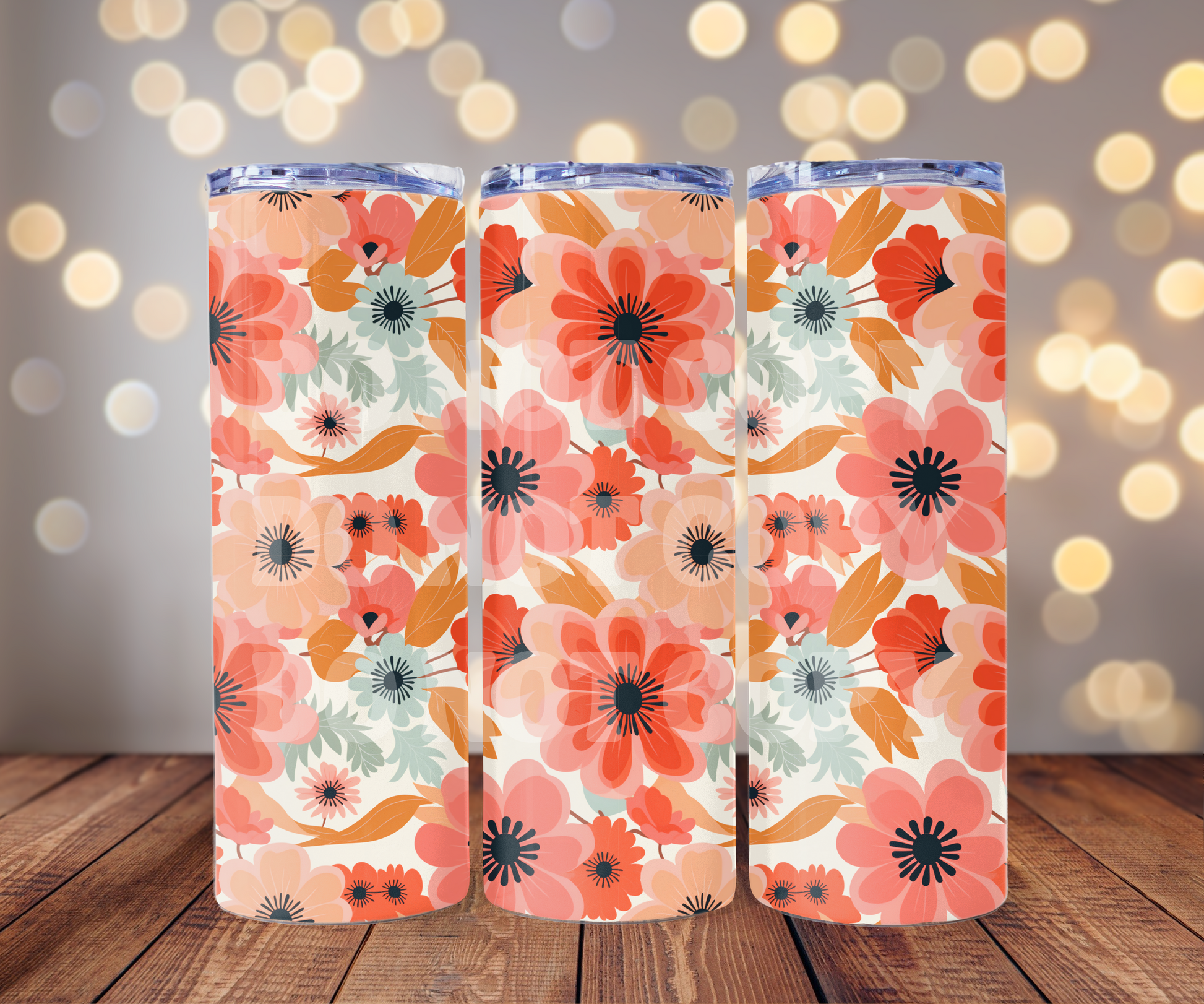 Retro Floral 20 oz Skinny Tumbler Sublimation Transfer - Not Seamless