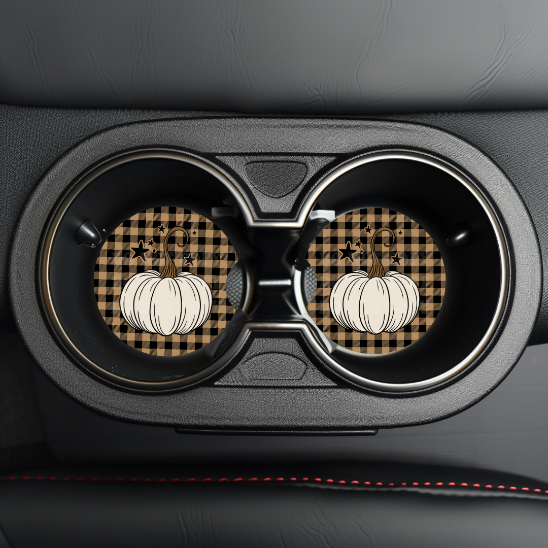 White Pumpkin Car Coaster Sublimation Transfer (Set of 2)