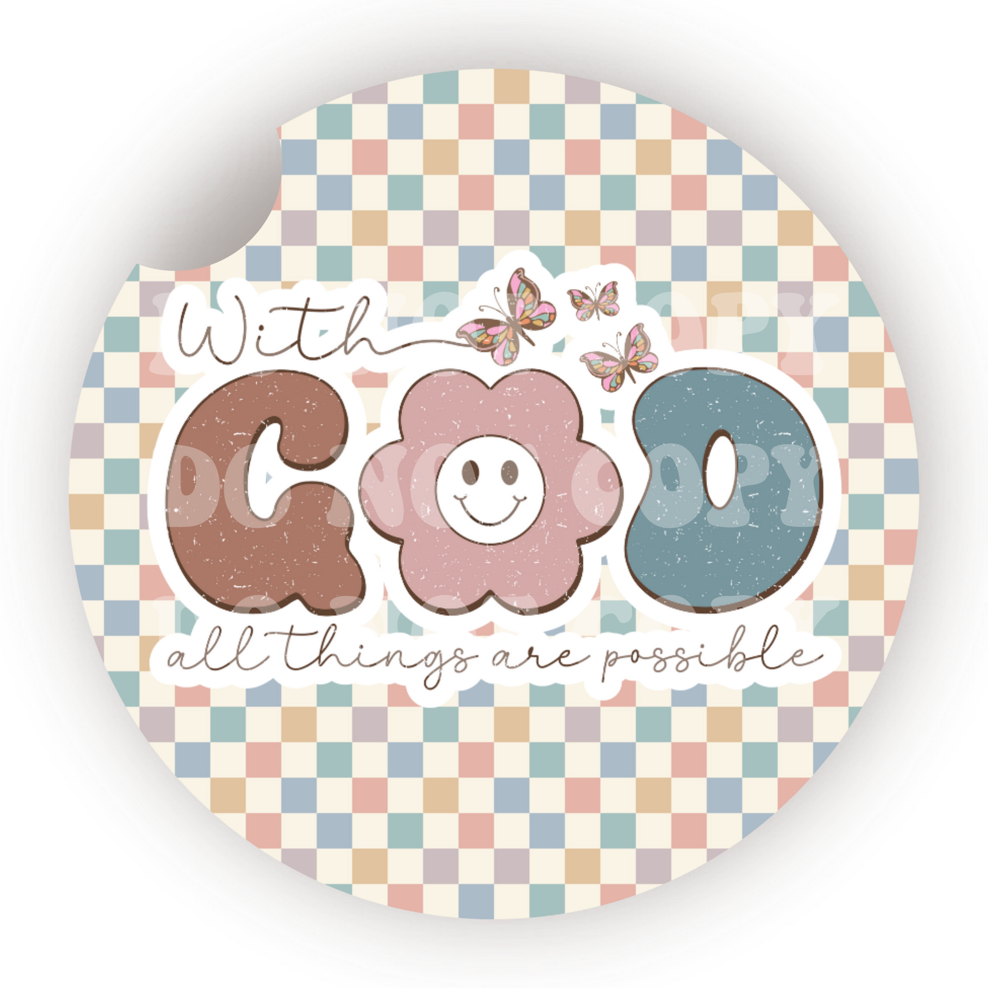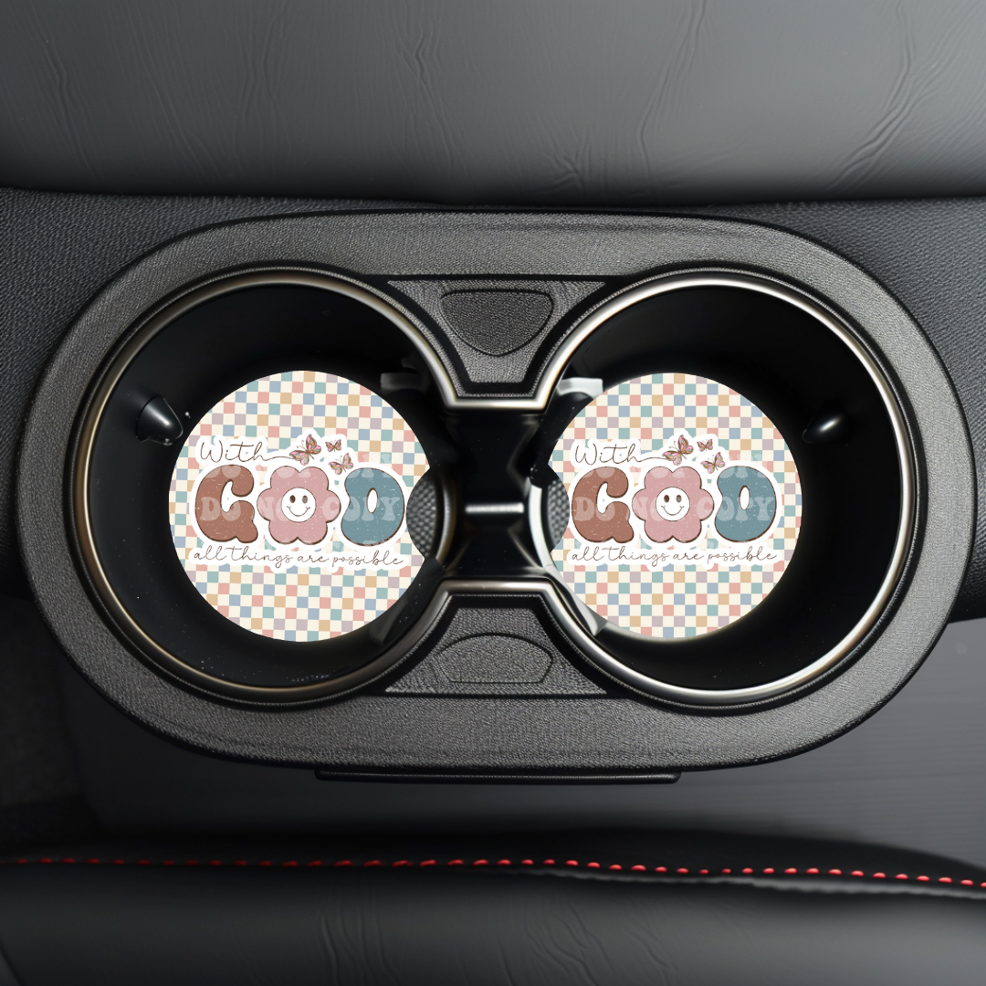With God All Things Are Possible Car Coaster Sublimation Transfer (Set of 2)